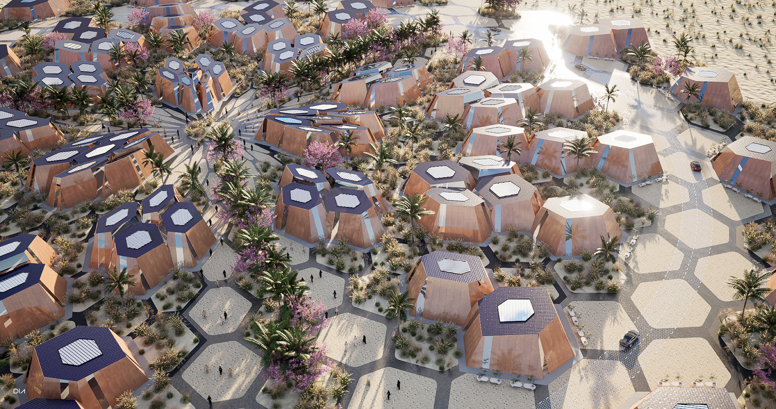 A new paradigm in urban planning: Crystal Village represents a unique approach to urban design, diverging from the conventional rigid frameworks. This innovative community is inspired by organic forms and sustainable practices, creating an environment that harmoniously integrates with the natural landscape. Streets meander like ancient desert pathways, inviting exploration and serendipitous encounters, while the overall layout encourages a seamless blend of urban living with the surrounding environment.