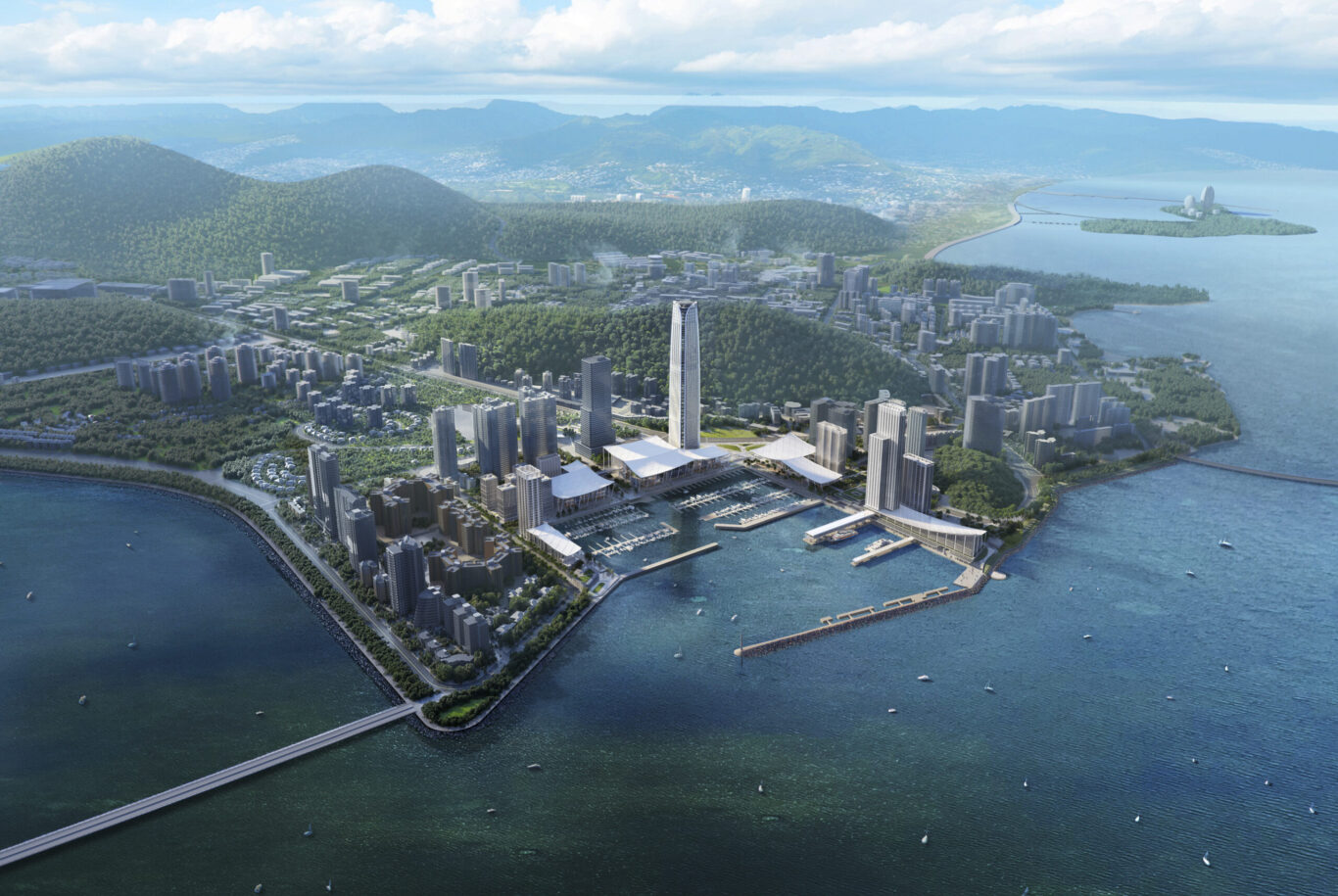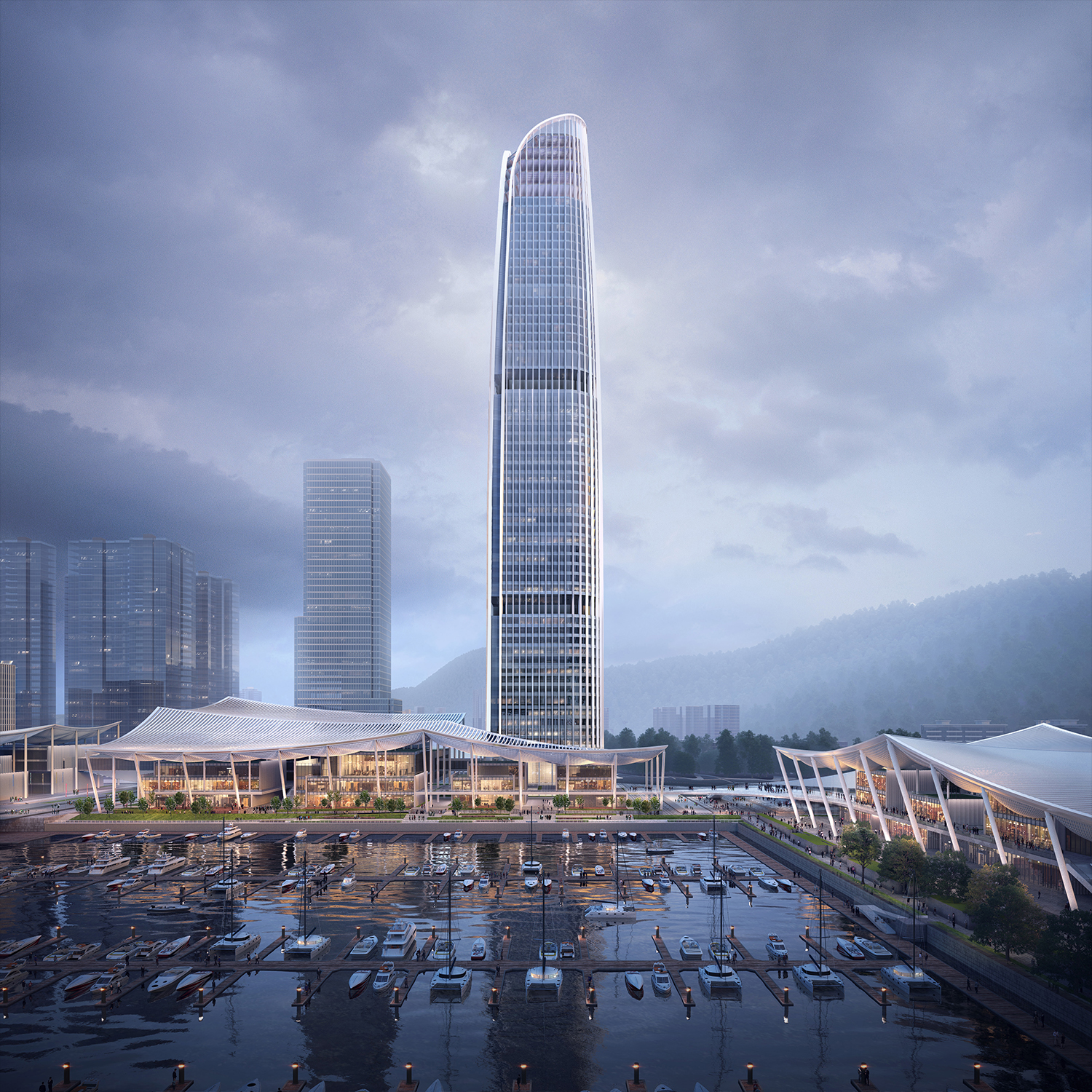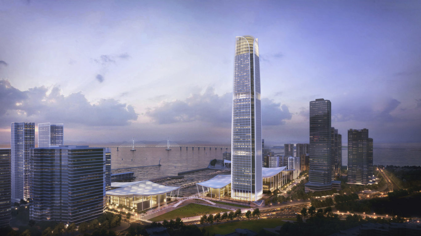 The project includes a supertall skyscraper that reaches a height of 318.5 meters with 65 levels of mixed-use program including office, hotel, and retail. The building’s form is characterized by a finely tuned geometry that is derived from a series of tangential vertical arcs and plan profile designed to optimize the distribution of load forces, maximize floor plate area, and decrease column spacing in response to programmatic and sustainable design requirements. The tower’s design included complex surface geometry that was addressed through a combination of computational modeling and analytical methods. There was a significant effort made to improve constructability while maintaining the overall character of the architecture. The form of the tower tapers in both plan and section with softened corner edges to minimize wind-induced torsional loads. The curtain wall façade included a sawtooth type surface geometry where the vision glass is inclined, looking downward and the spandrel is declined, looking upward to maximize solar exposure to the spandrel and minimize heat gain. A portion of the curtain wall geometry included complex surfaces, which were analyzed to identify optimal radii and best approximate the surfaces with cylindrical geometry.