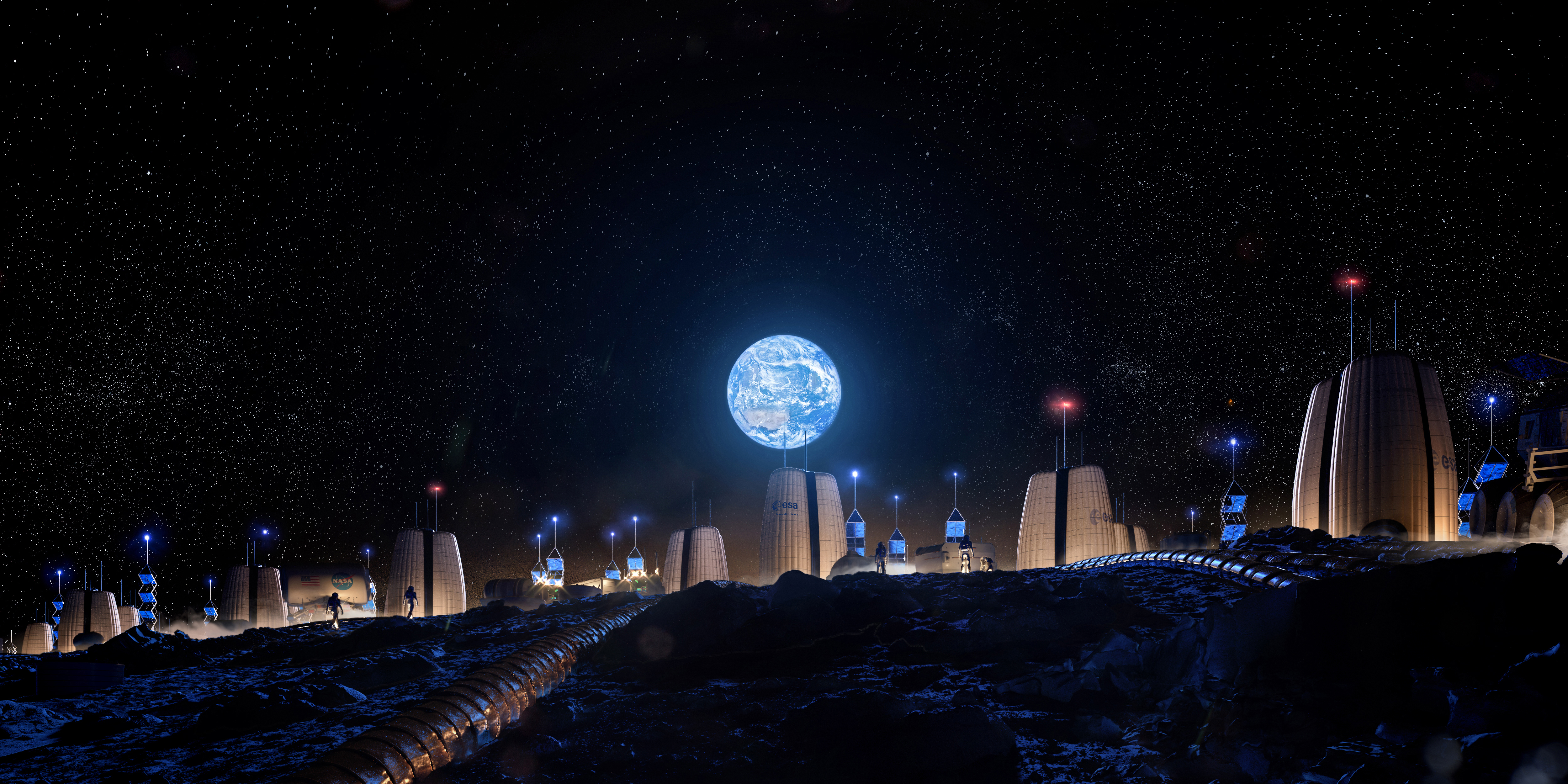The Moon Village is a multidisciplinary collaboration with European Space Agency and Massachusetts Institute of Technology that explores resilient, self-sufficient architectural systems and mission concepts for a permanently inhabited lunar settlement through integrated space architecture, systems engineering, and global cooperation.