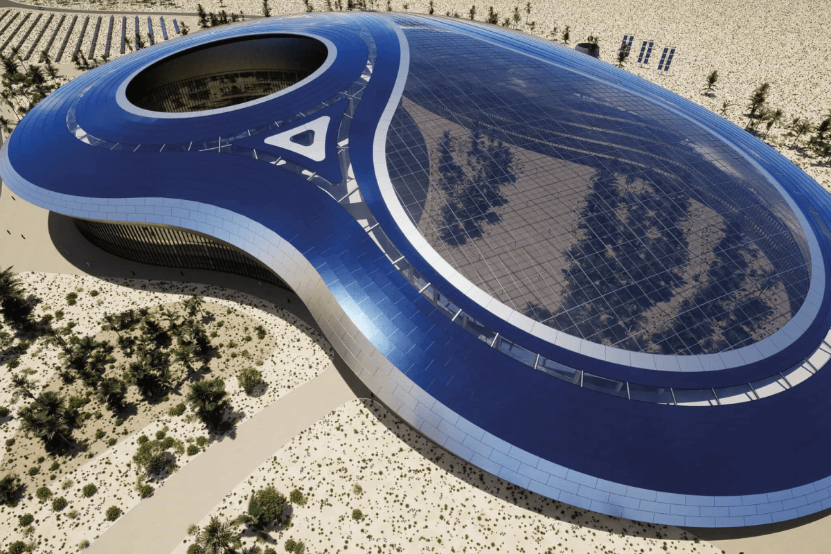 The concept design for the Graphene Fibre KSA Factory draws inspiration from the hexagonal molecular structure of carbon—symbolizing strength, efficiency, and modularity.